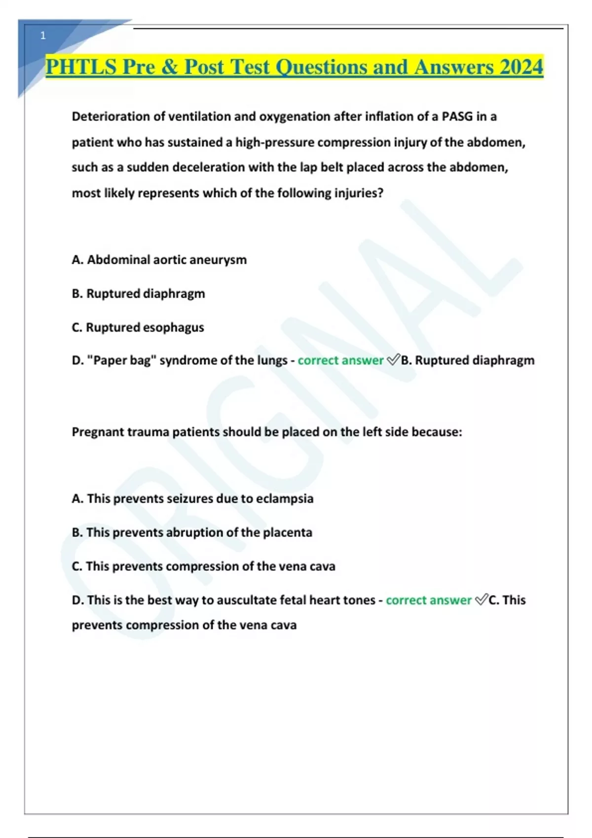 phtls pre post test questions and answers 2024