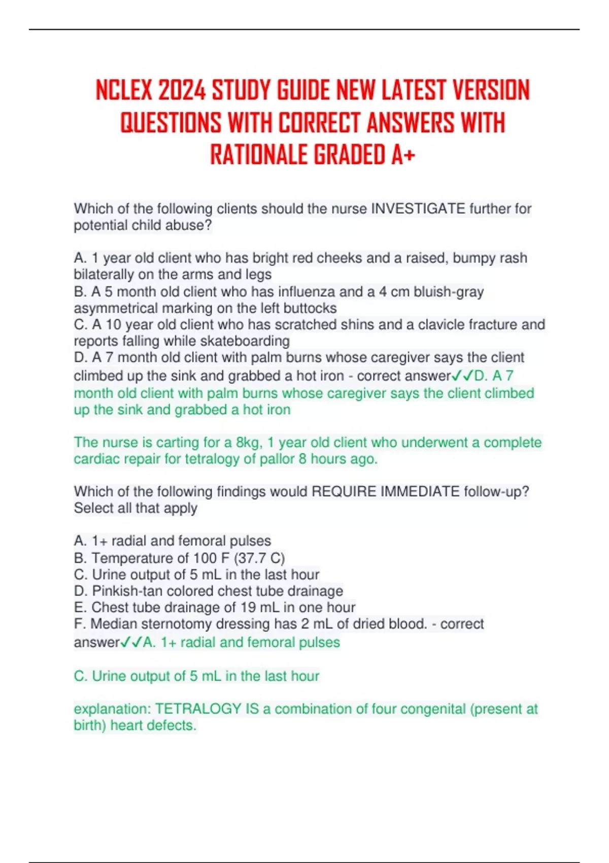 NCLEX 2024 STUDY GUIDE NEW LATEST VERSION QUESTIONS WITH CORRECT ANSWERS WITH RATIONALE GRADED A+