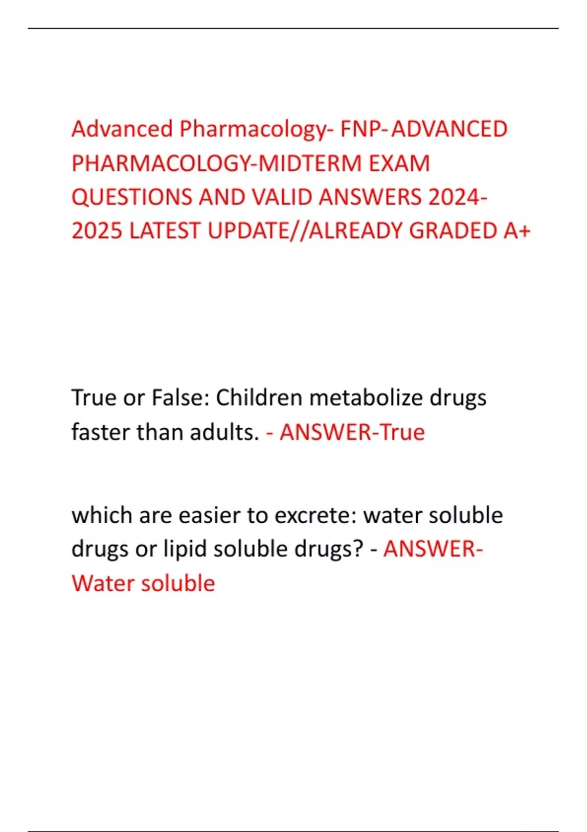 Advanced Pharmacology- FNP-ADVANCED PHARMACOLOGY-MIDTERM EXAM QUESTIONS AND VALID ANSWERS 2024- 2025 LATEST UPDATE//ALREADY GRADED A+