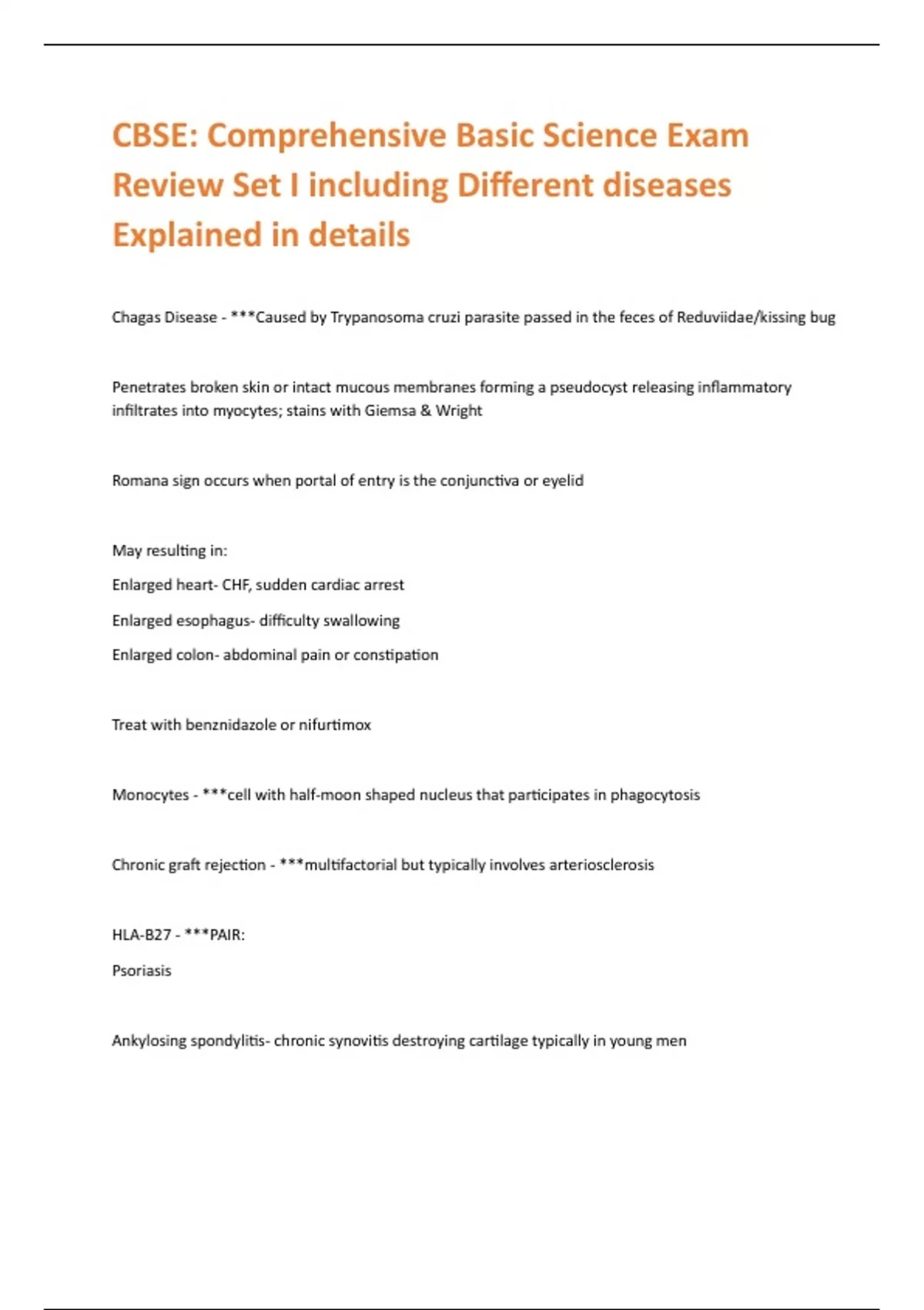 CBSE: Comprehensive Basic Science Exam Review Set I including Different diseases Explained in details