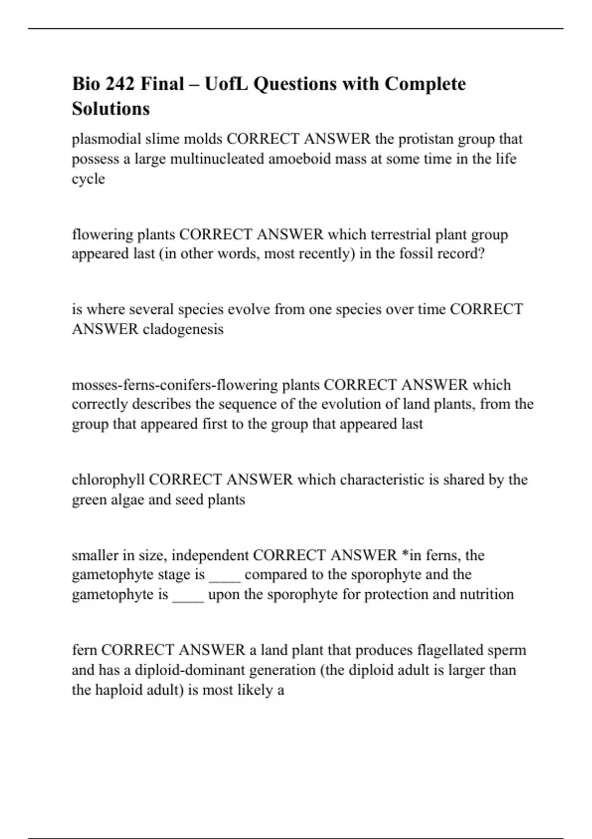 Bio 242 Final – UofL Questions with Complete Solutions