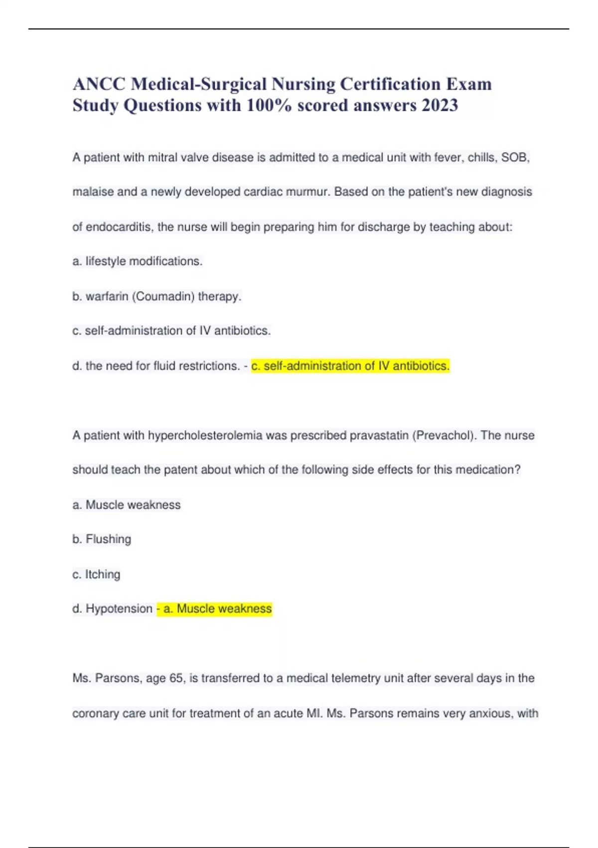 ANCC Medical-Surgical Nursing Certification Exam Study Questions with 100% scored answers 2023