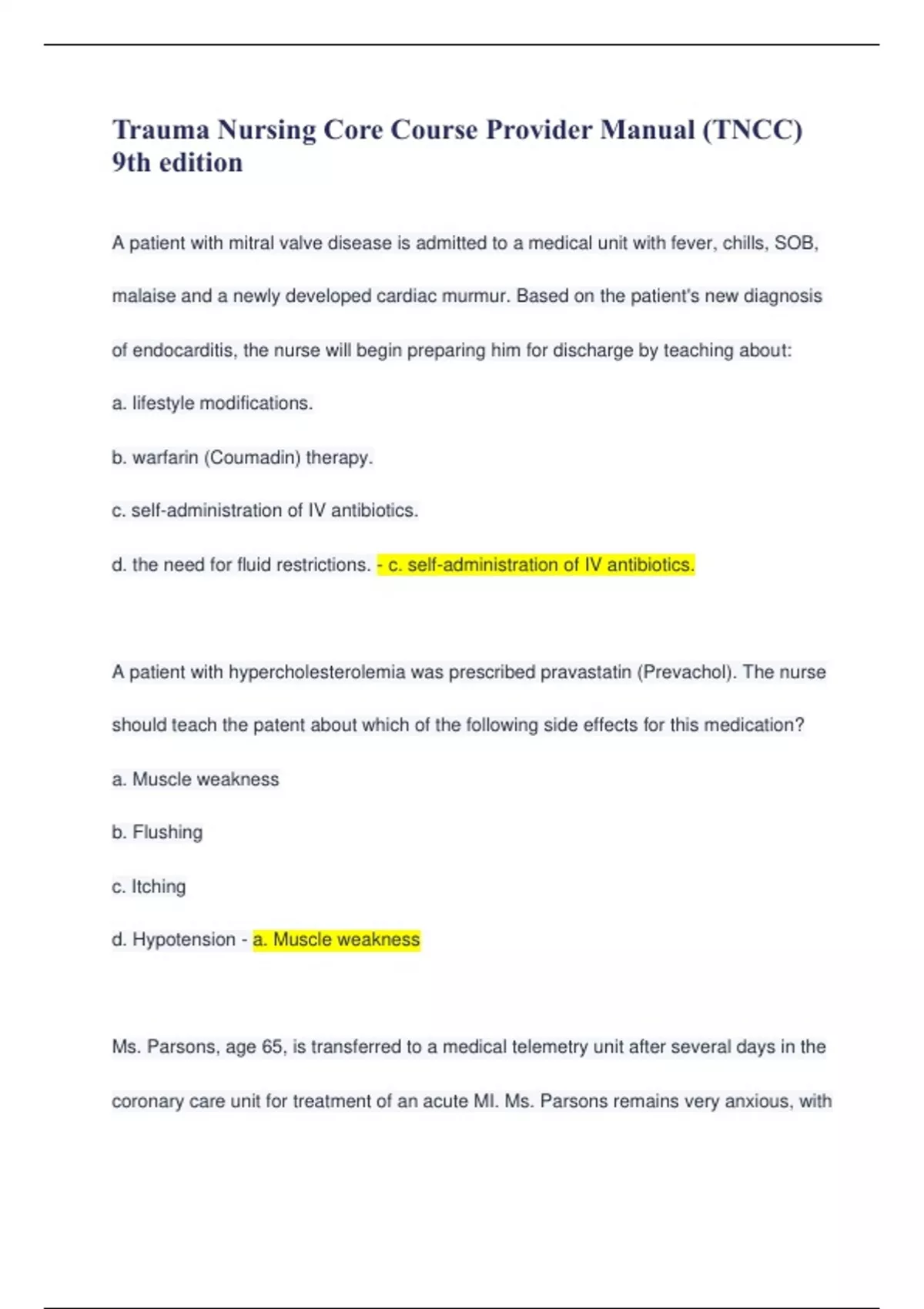 Medical-Surgical Nursing Certification Exam Study Guide Questions with Complete Answers