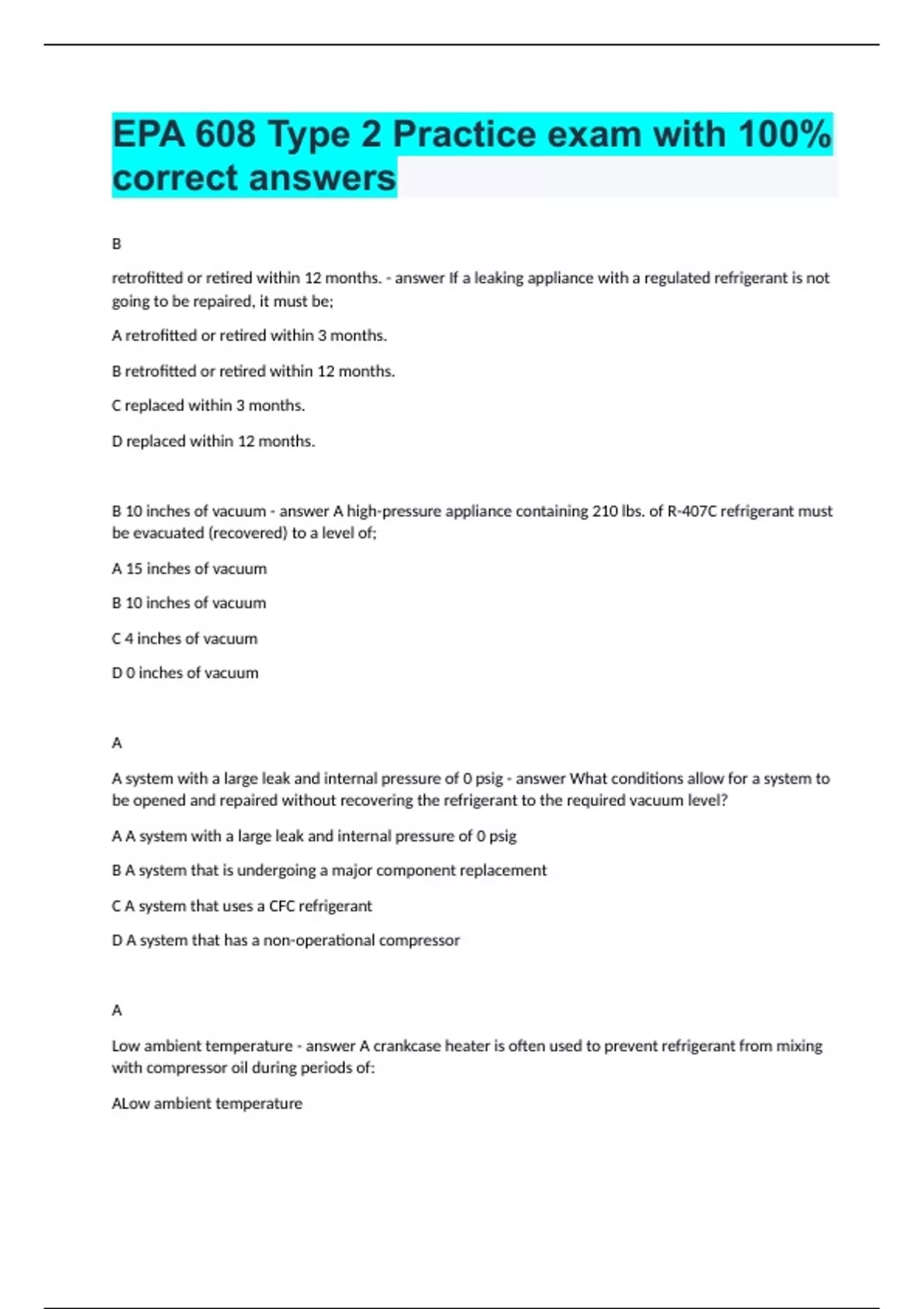 EPA 608 Type 2 Practice exam with 100% correct answers