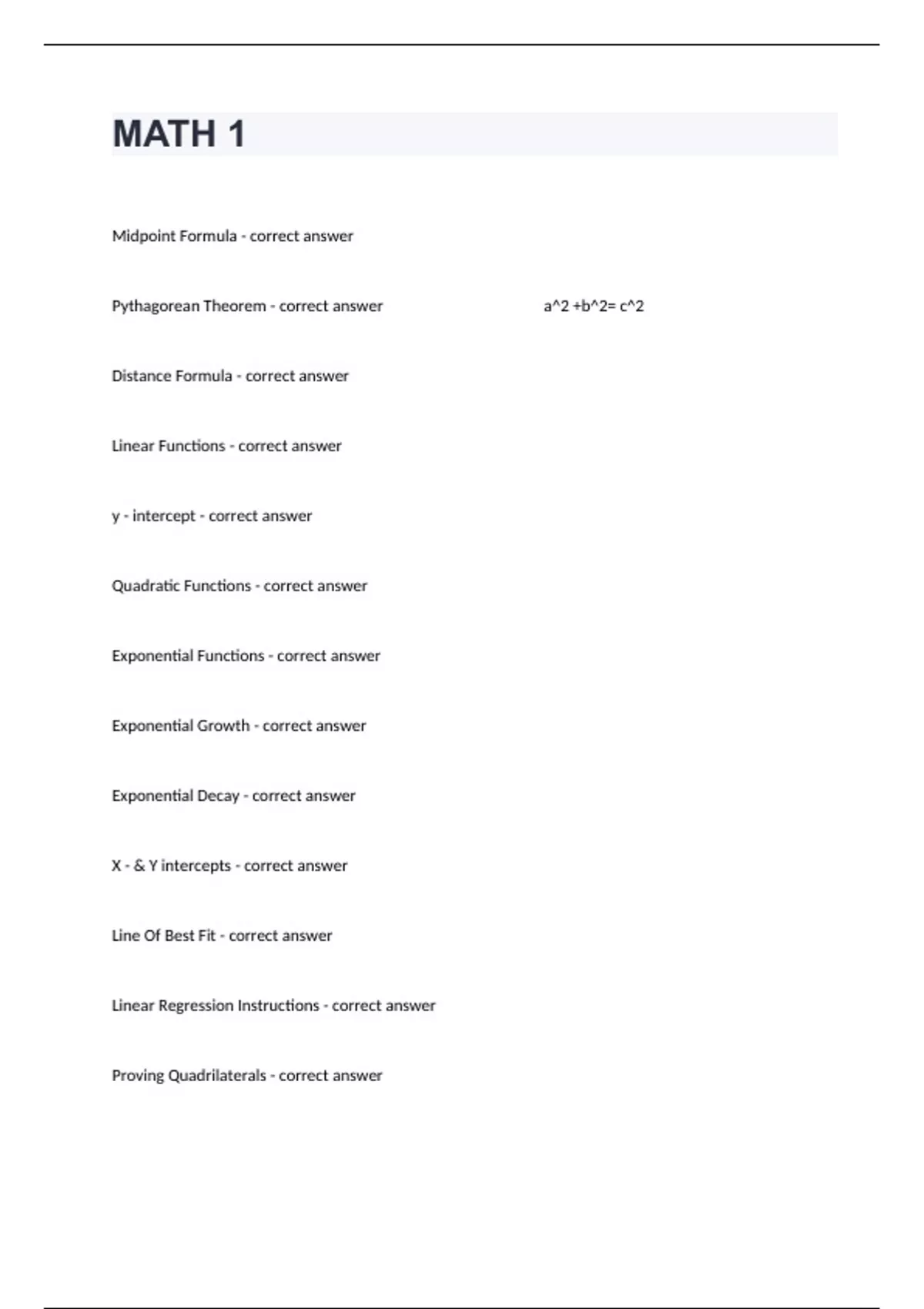 MATH 1 Study Guide Questions And Correct Answers.