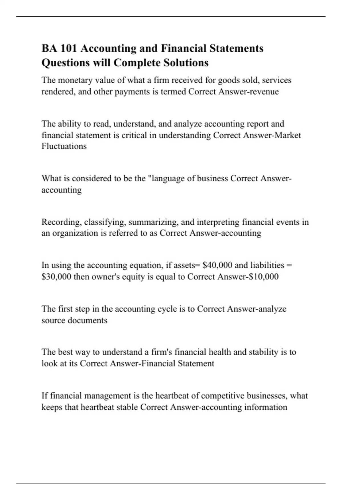 BA 101 Accounting and Financial Statements Questions will Complete Solutions.