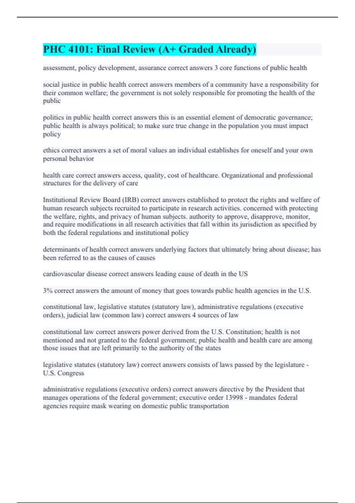PHC 4101: Final Review (A+ Graded Already)
