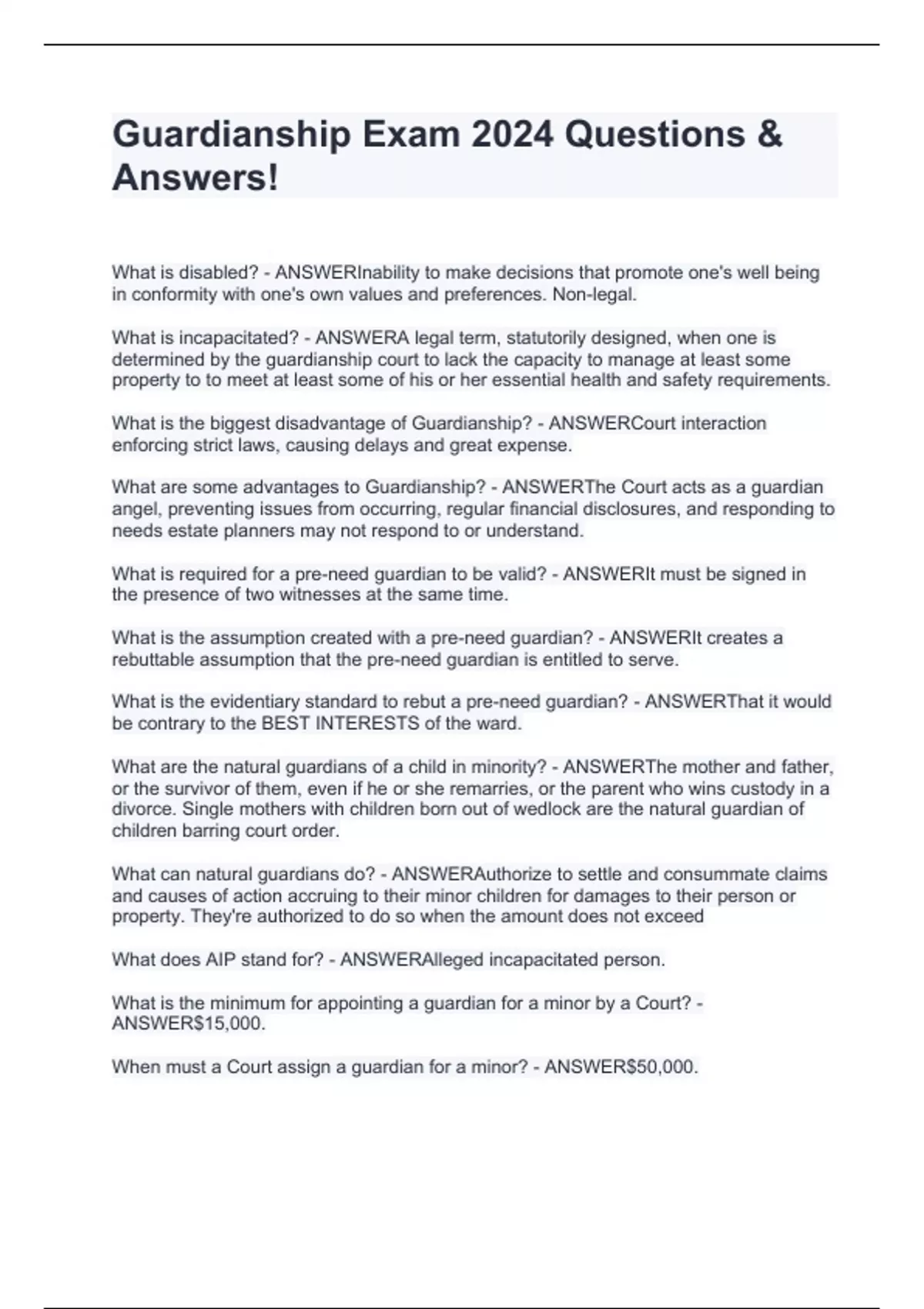guardianship exam 2024 stuvia