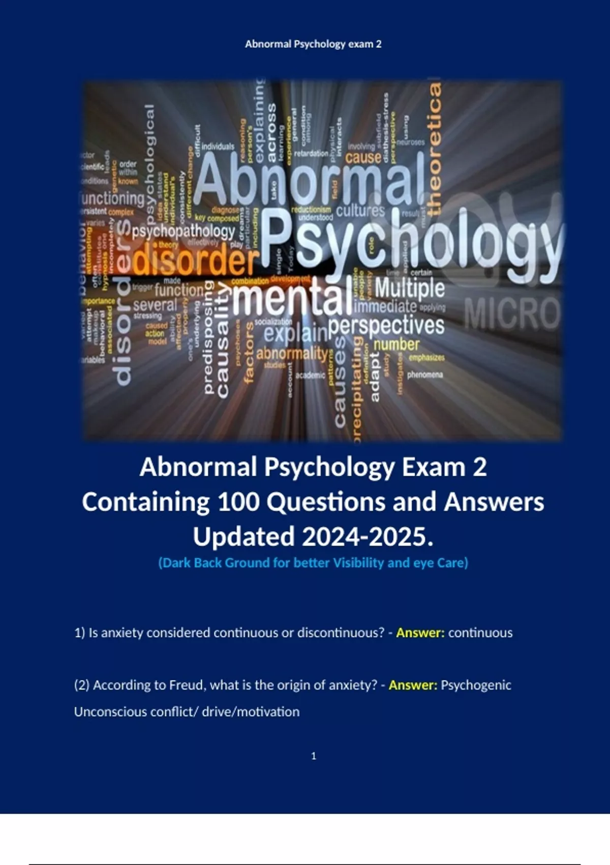 (2) According to Freud, what is the origin of anxiety? - Answer: Psychogenic