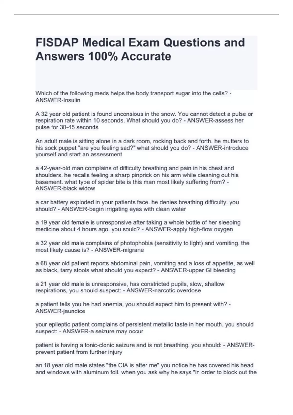FISDAP Medical Exam Questions and Answers 100% Accurate