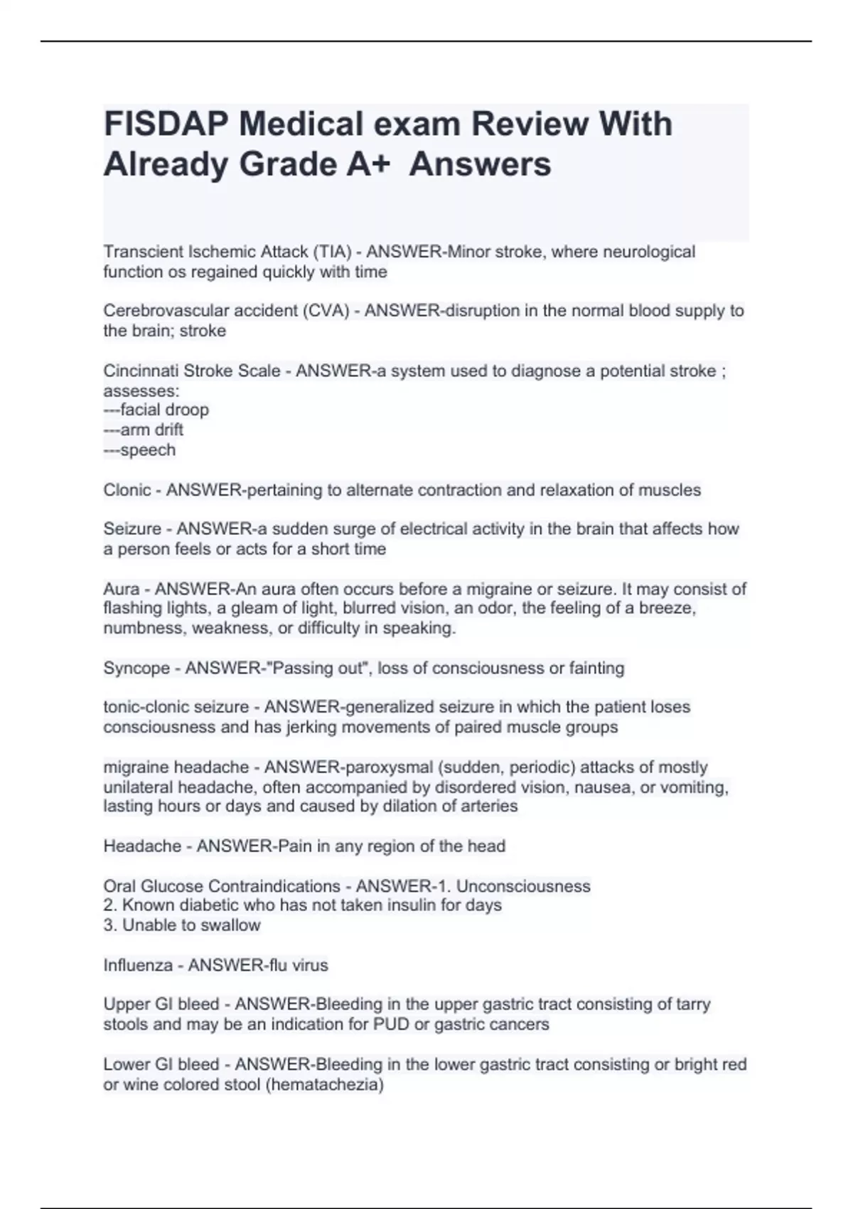 Transcient Ischemic Attack (TIA) - ANSWER-Minor stroke, where neurological