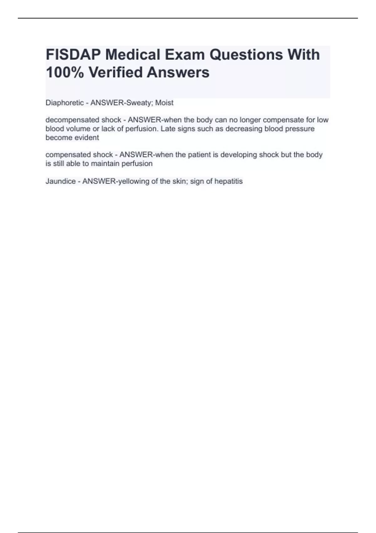 FISDAP Medical Exam Questions With 100% Verified Answers