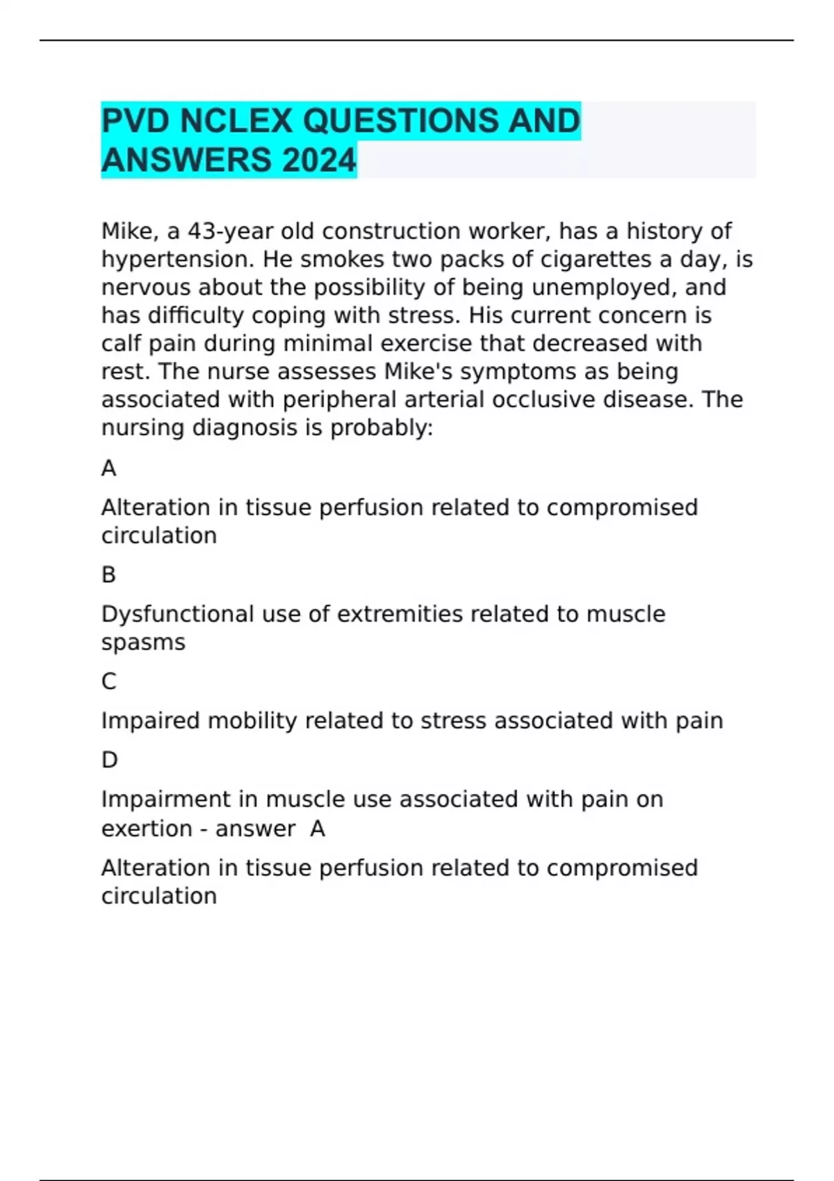 PVD NCLEX QUESTIONS AND ANSWERS 2024