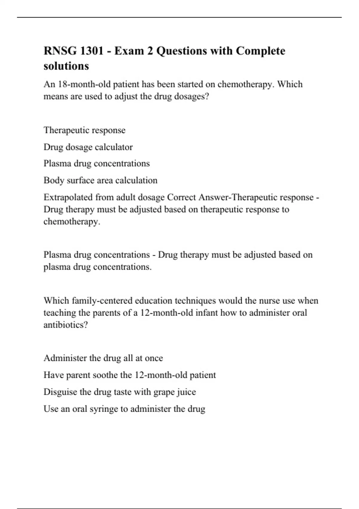 RNSG 1301 - Exam 2 Questions with Complete solutions