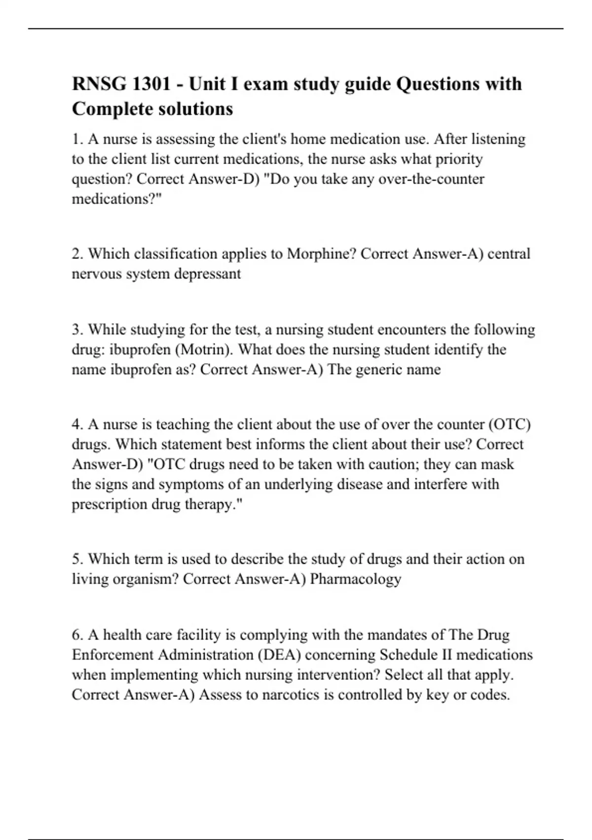 RNSG 1301 - Unit I exam study guide Questions with Complete solutions