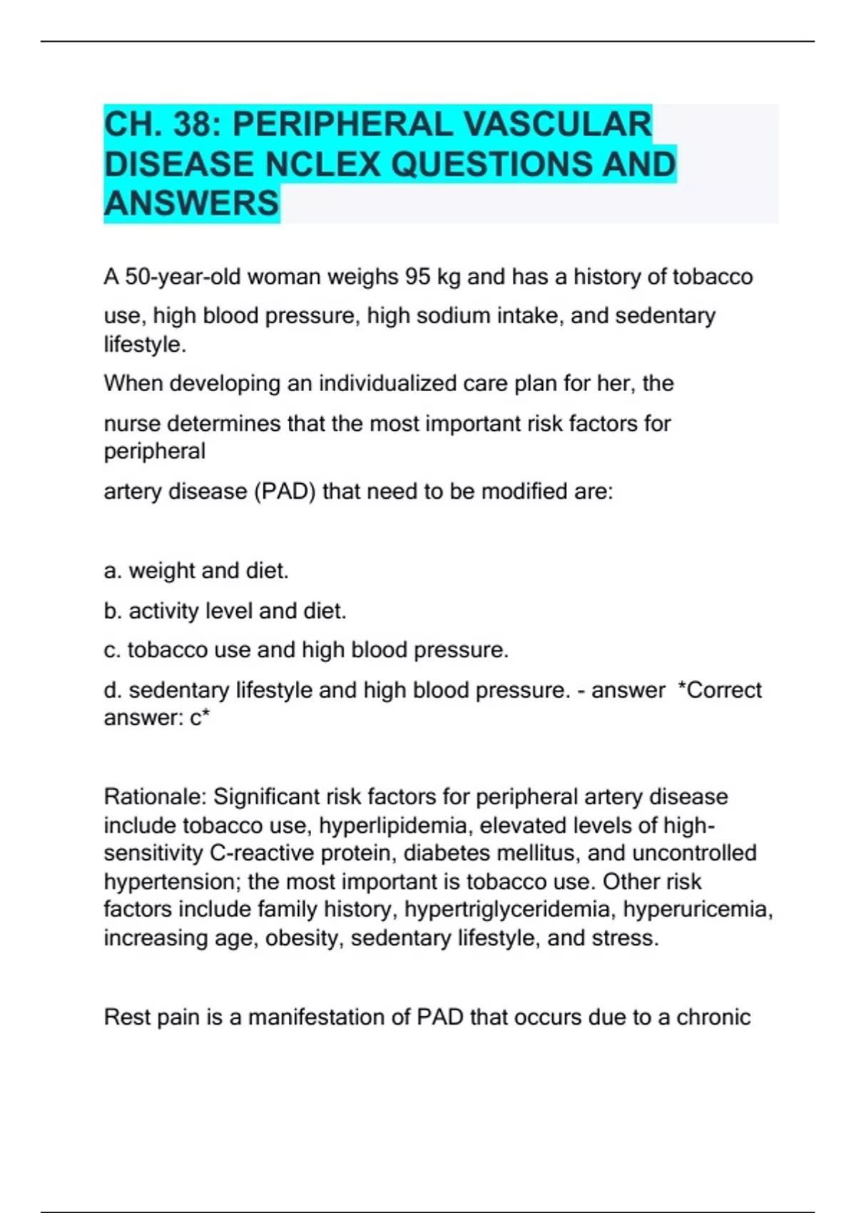 CH. 38 PERIPHERAL VASCULAR DISEASE NCLEX QUESTIONS AND ANSWERS.