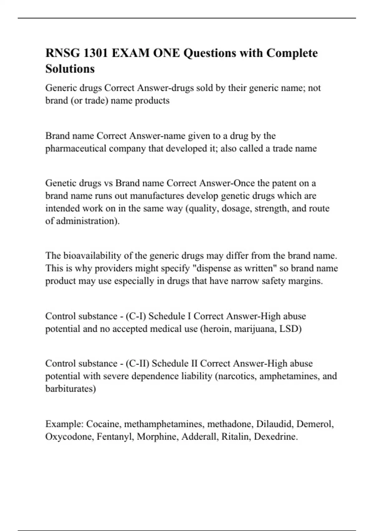 RNSG 1301 EXAM ONE Questions with Complete Solution1