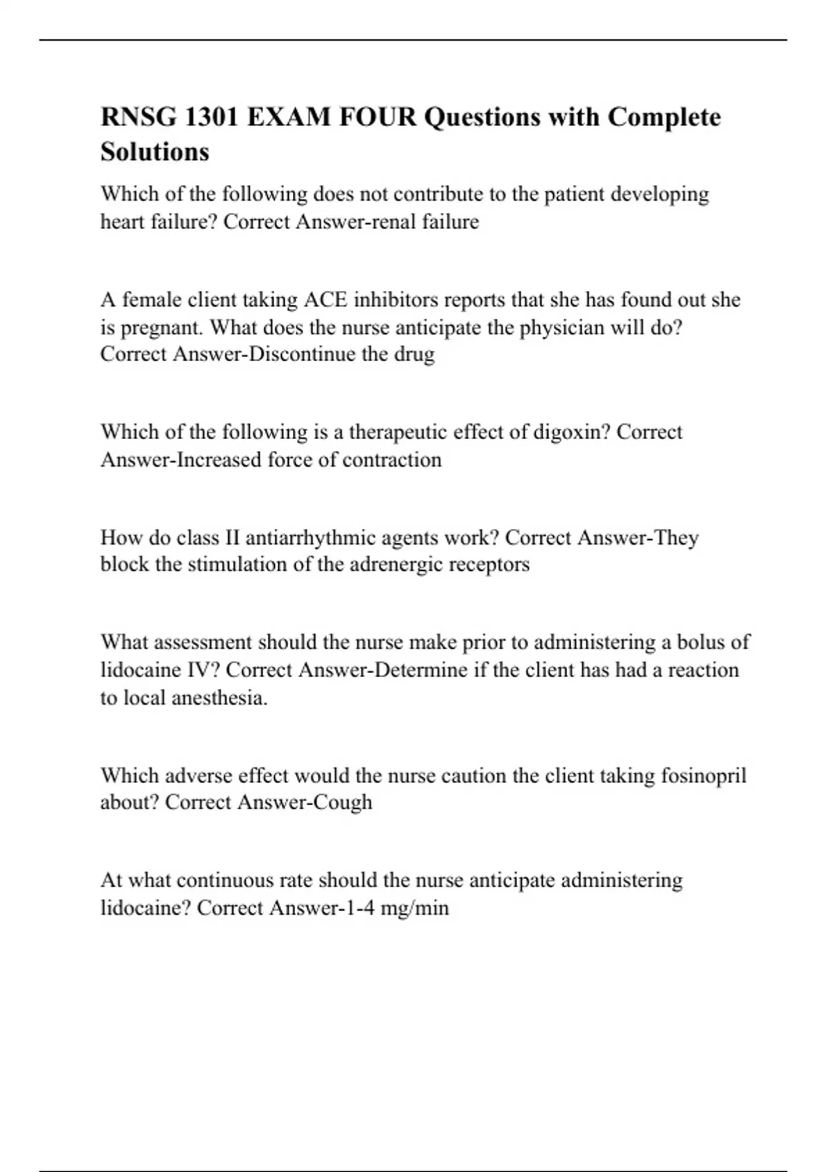 RNSG 1301 EXAM FOUR Questions with Complete Solution1