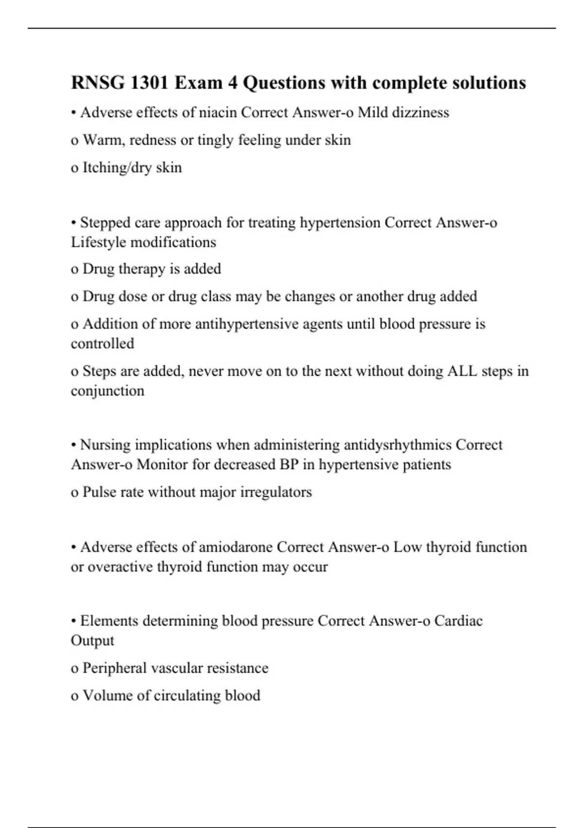 rnsg 1301 exam 4 questions with complete solutions