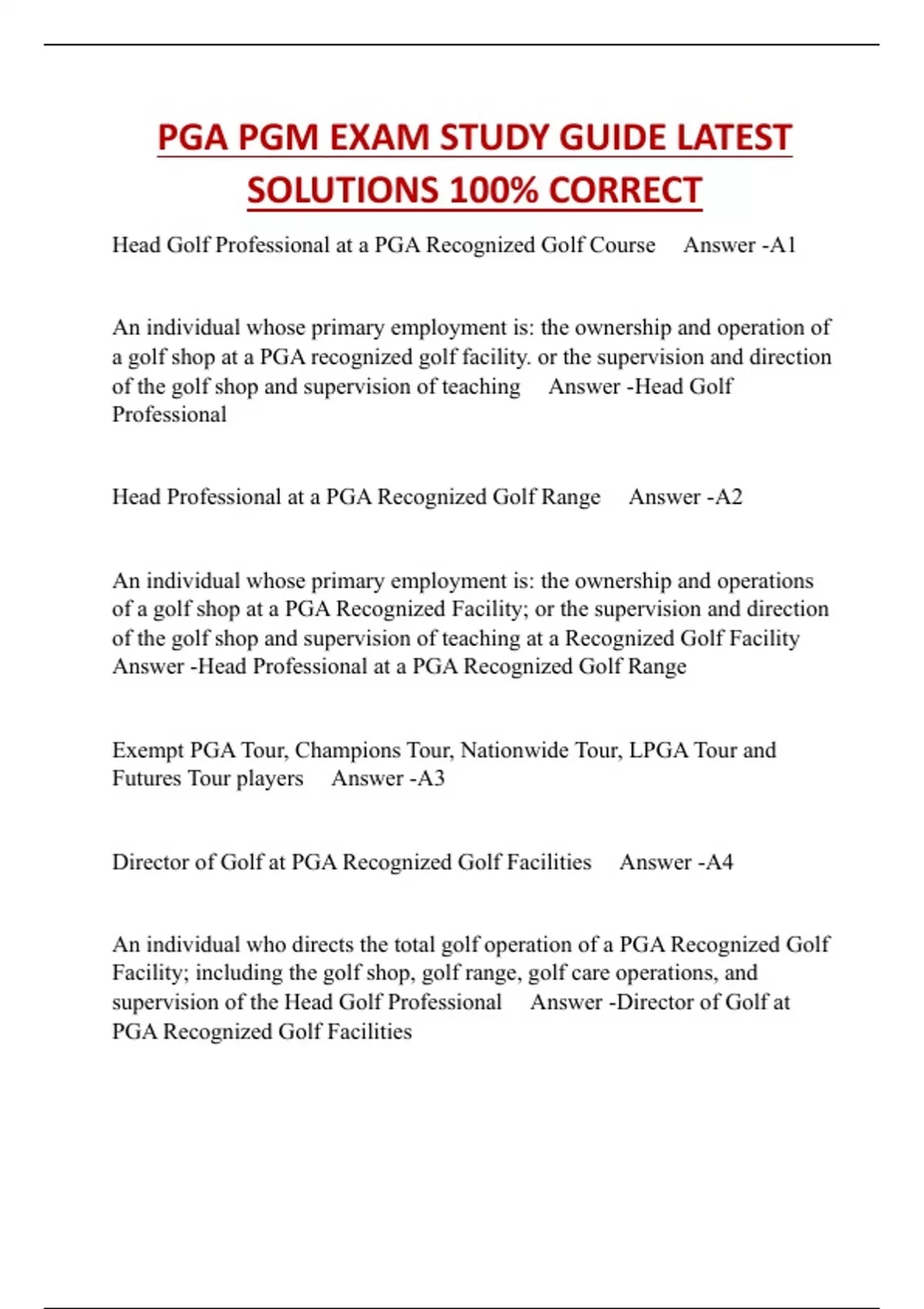 PGA PGM EXAM STUDY GUIDE LATEST SOLUTIONS 100% CORRECT