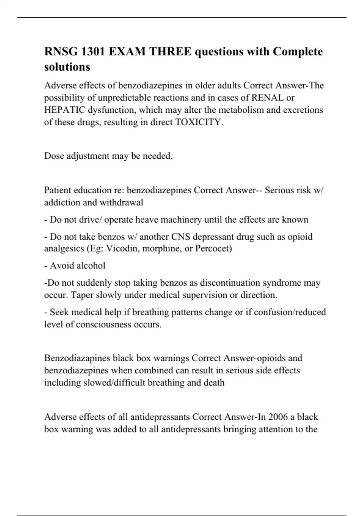 RNSG 1301 EXAM THREE questions with Complete solution1.