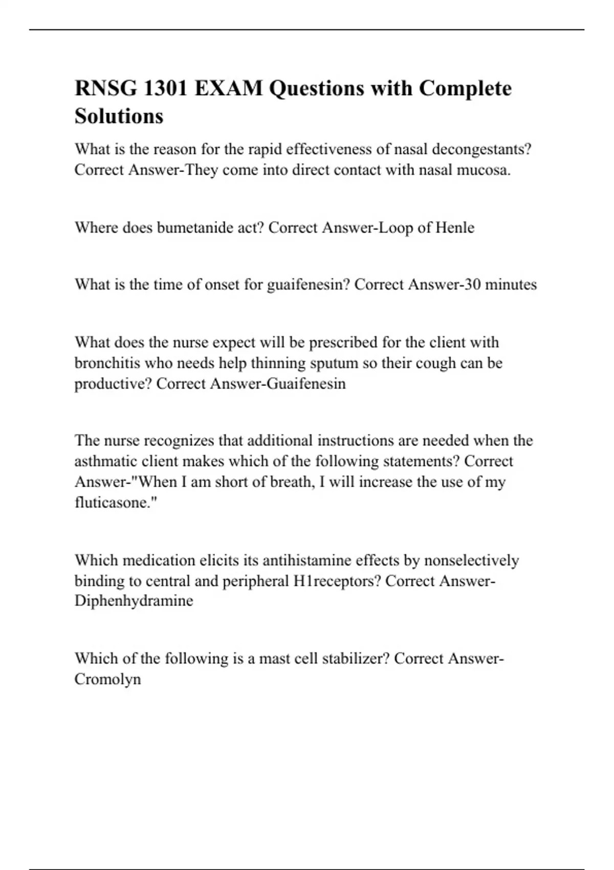 rnsg 1301 exam questions with complete solutions