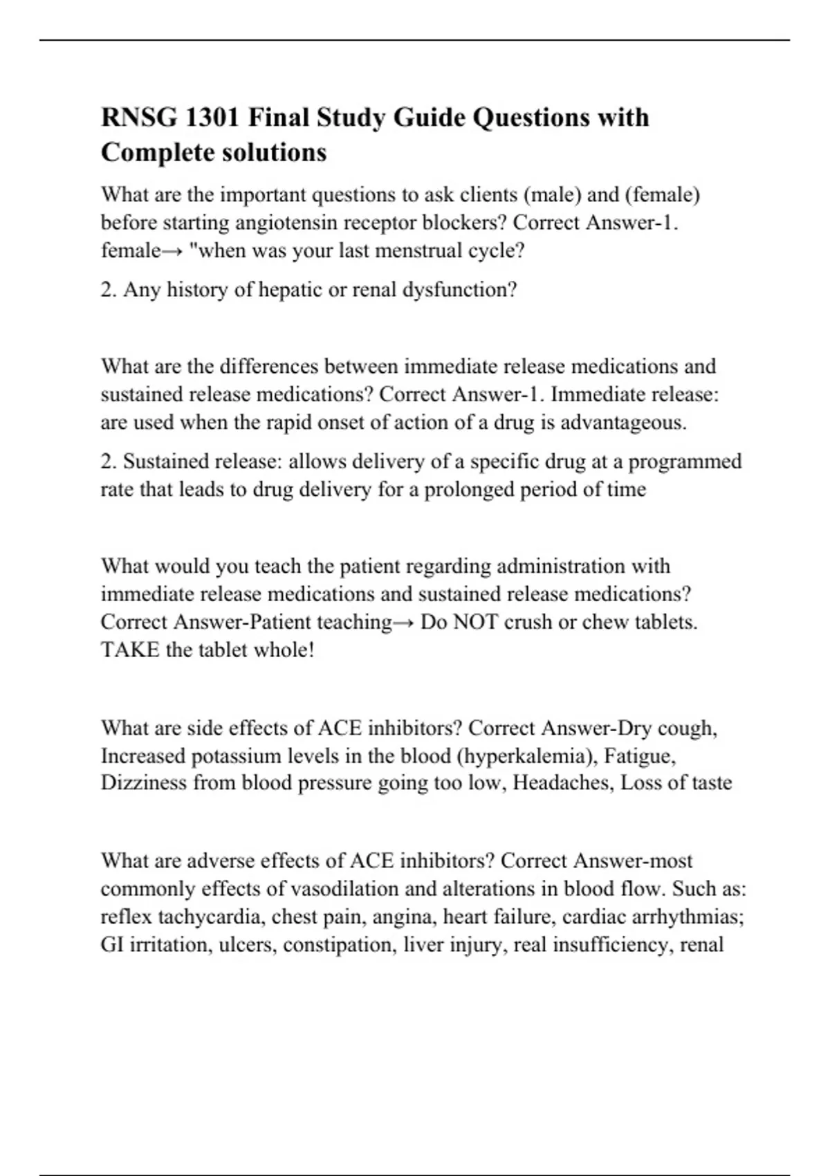 RNSG 1301 Final Study Guide Questions with Complete solutions