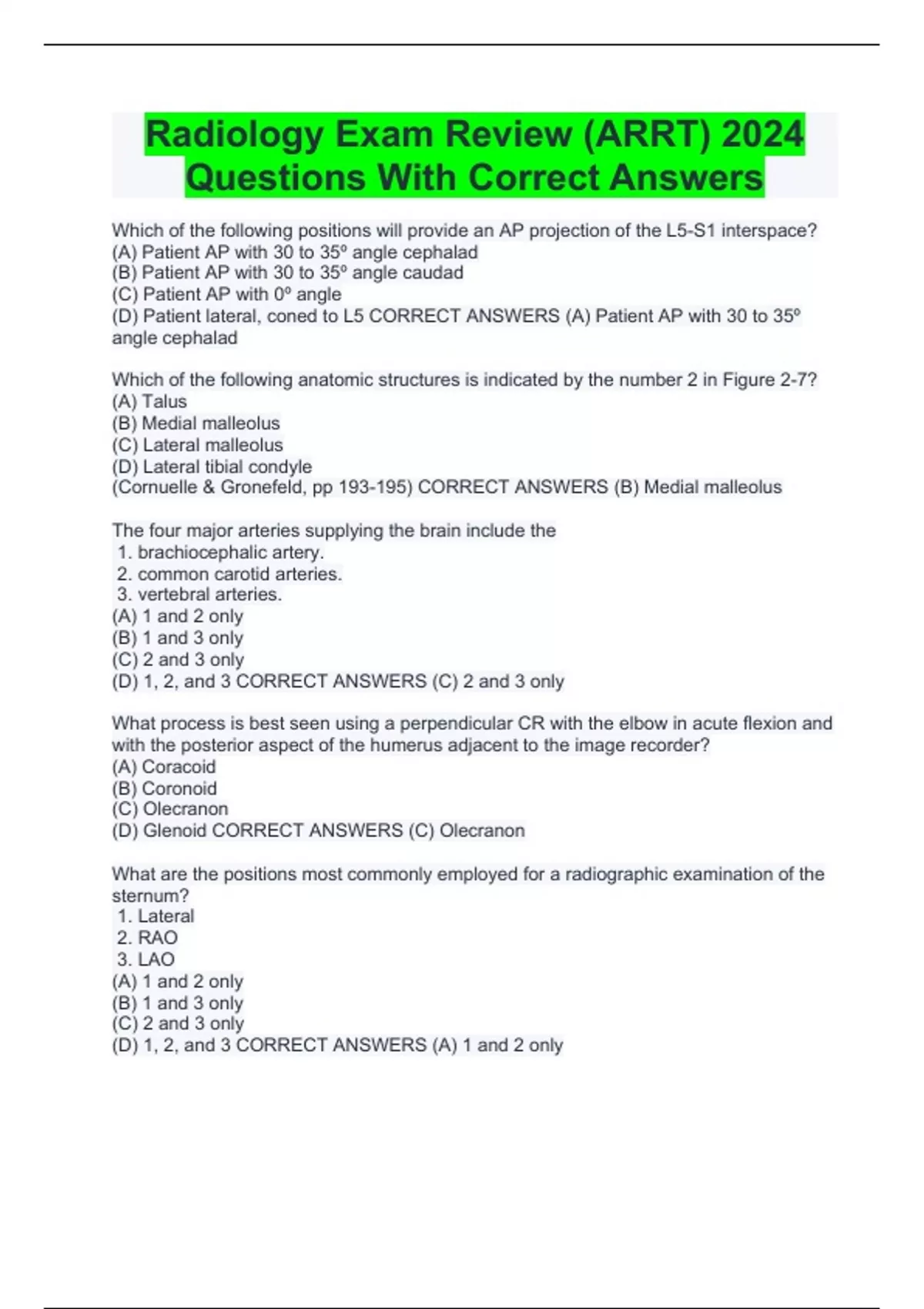 Radiology Exam Review (ARRT) 2024 Questions With Correct Answers