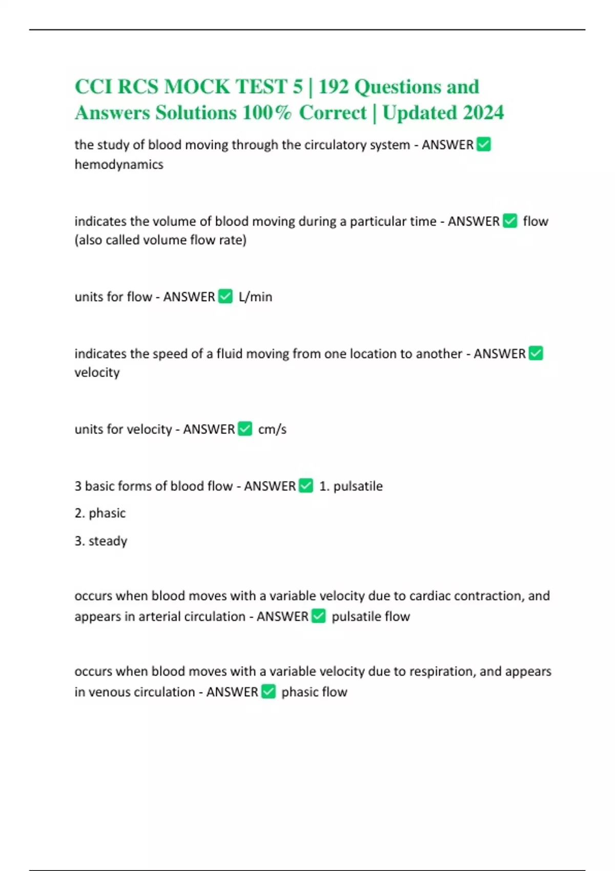 CCI RCS MOCK TEST 5 | 192 Questions and Answers Solutions 100% Correct | Updated 2024