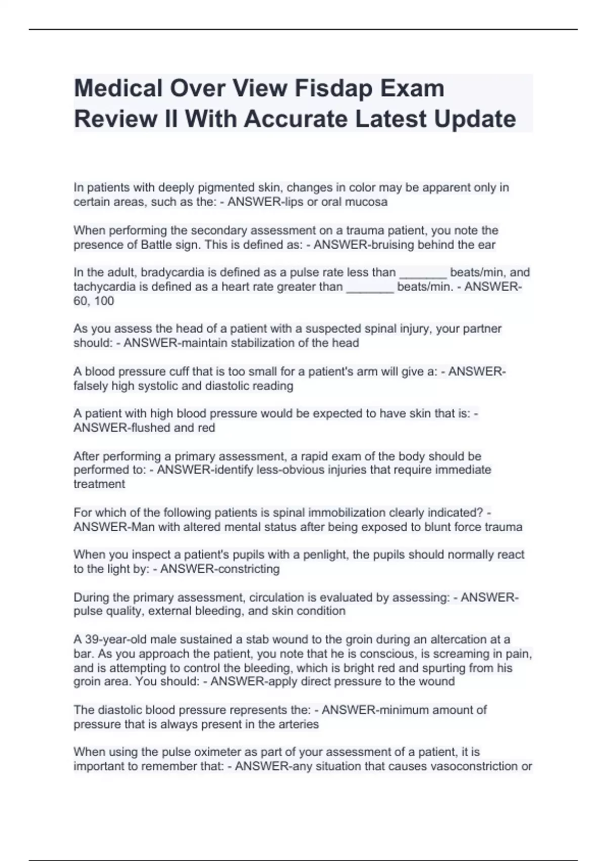 Medical Over View Fisdap Exam Review II With Accurate Latest Update