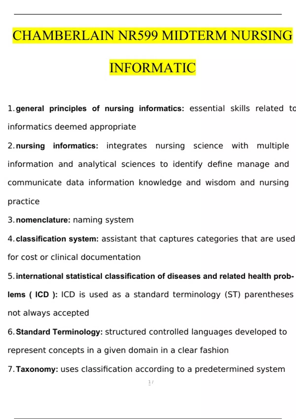 Chamberlain NR599 Midterm nursing informatic for Advanced Practice Updated | Download to score A+