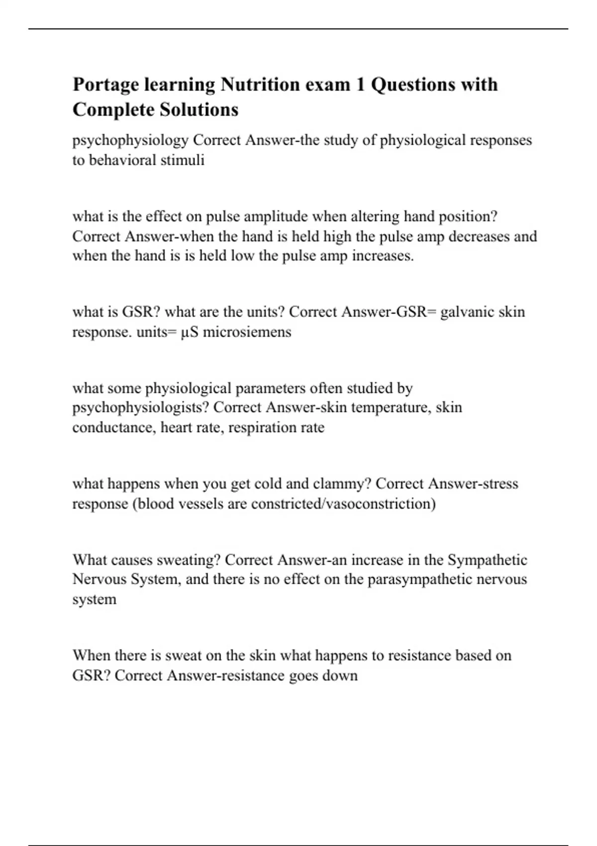 Portage learning Nutrition exam 1 Questions with Complete Solutions.