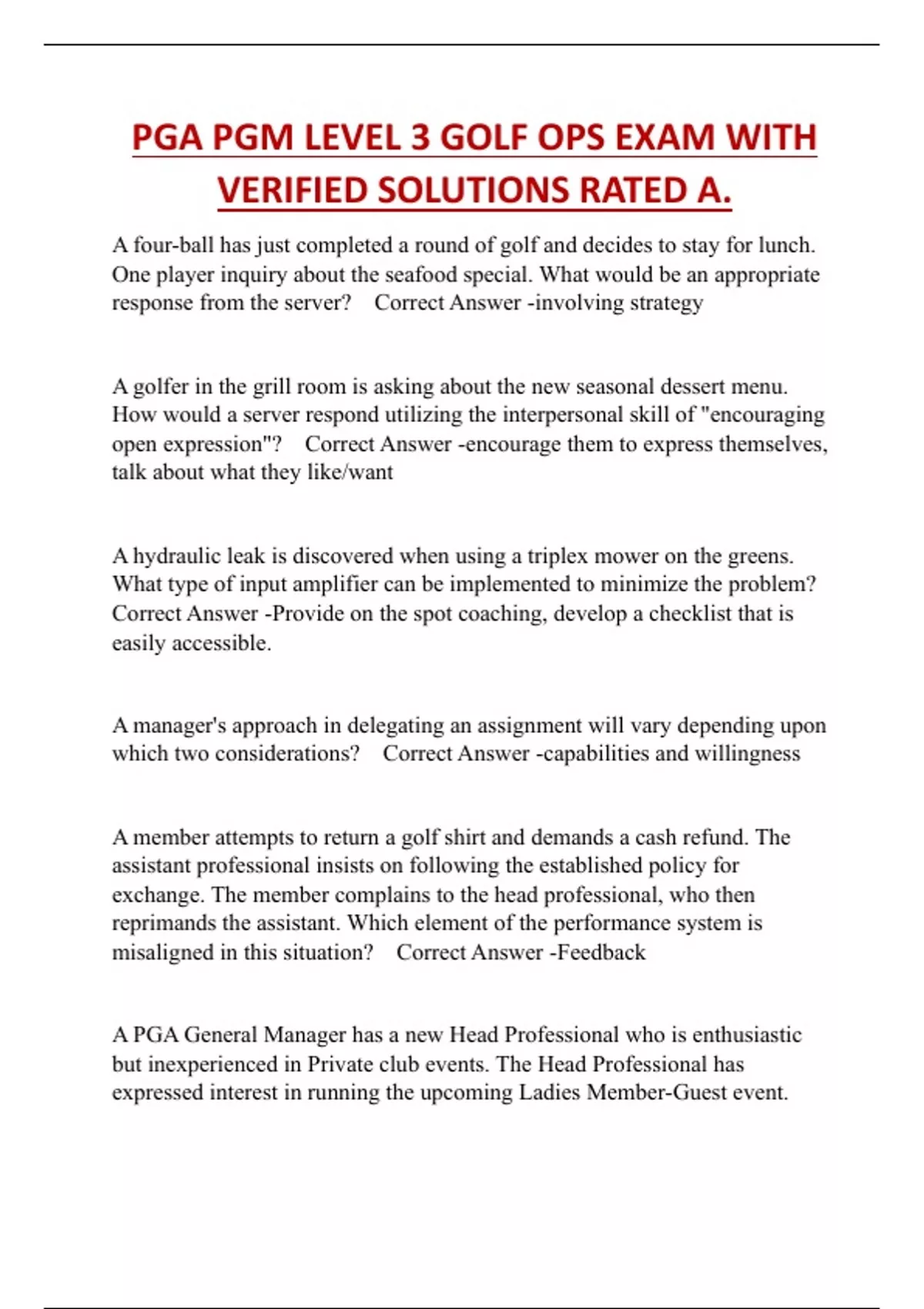 PGA PGM LEVEL 3 GOLF OPS EXAM WITH VERIFIED SOLUTIONS RATED A.