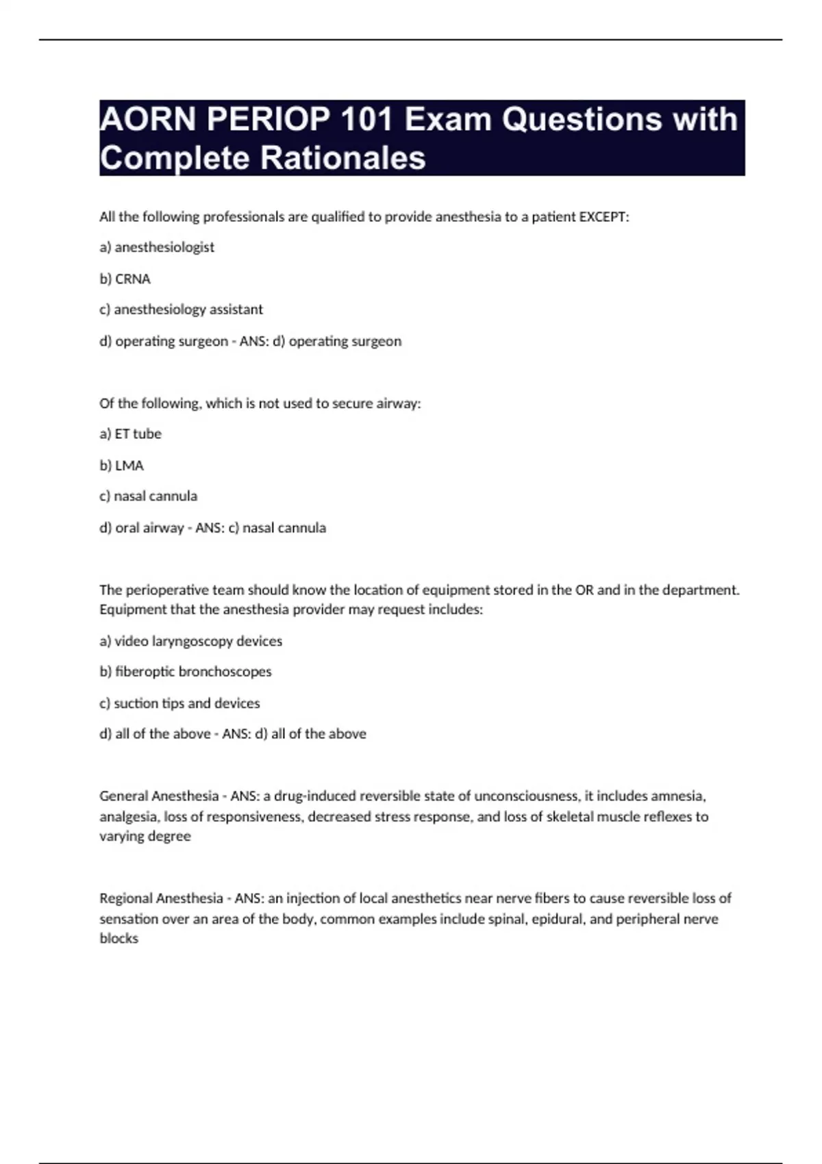 AORN PERIOP 101 Exam Questions with Complete Rationales