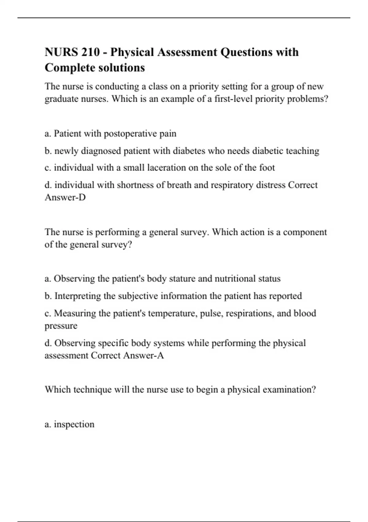 NURS 210 - Physical Assessment Questions with Complete solutions