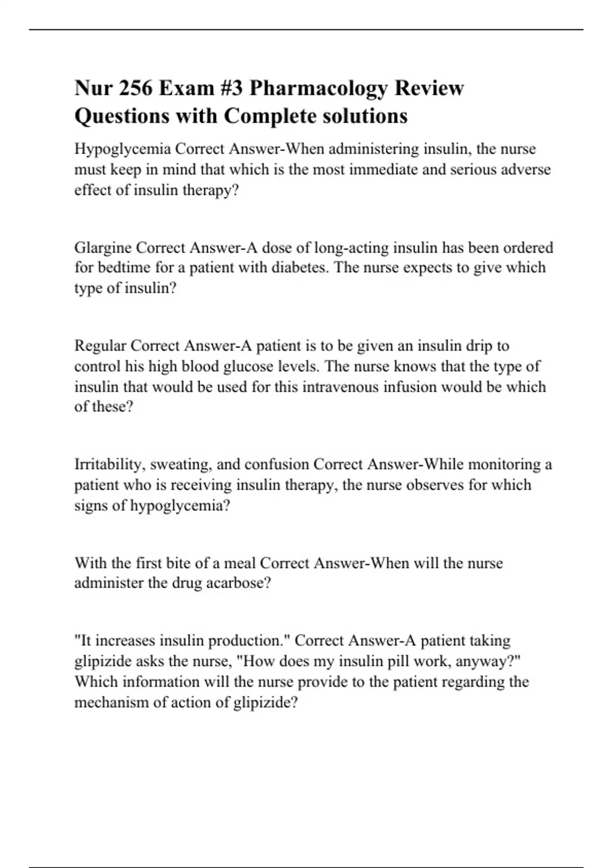 Nur 256 Exam #3 Pharmacology Review Questions with Complete solutions