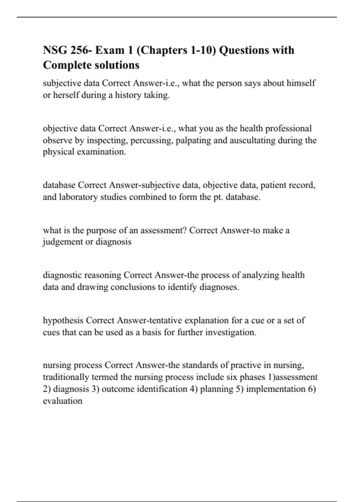NSG 256- Exam 1 (Chapters 1-10) Questions with Complete solutions
