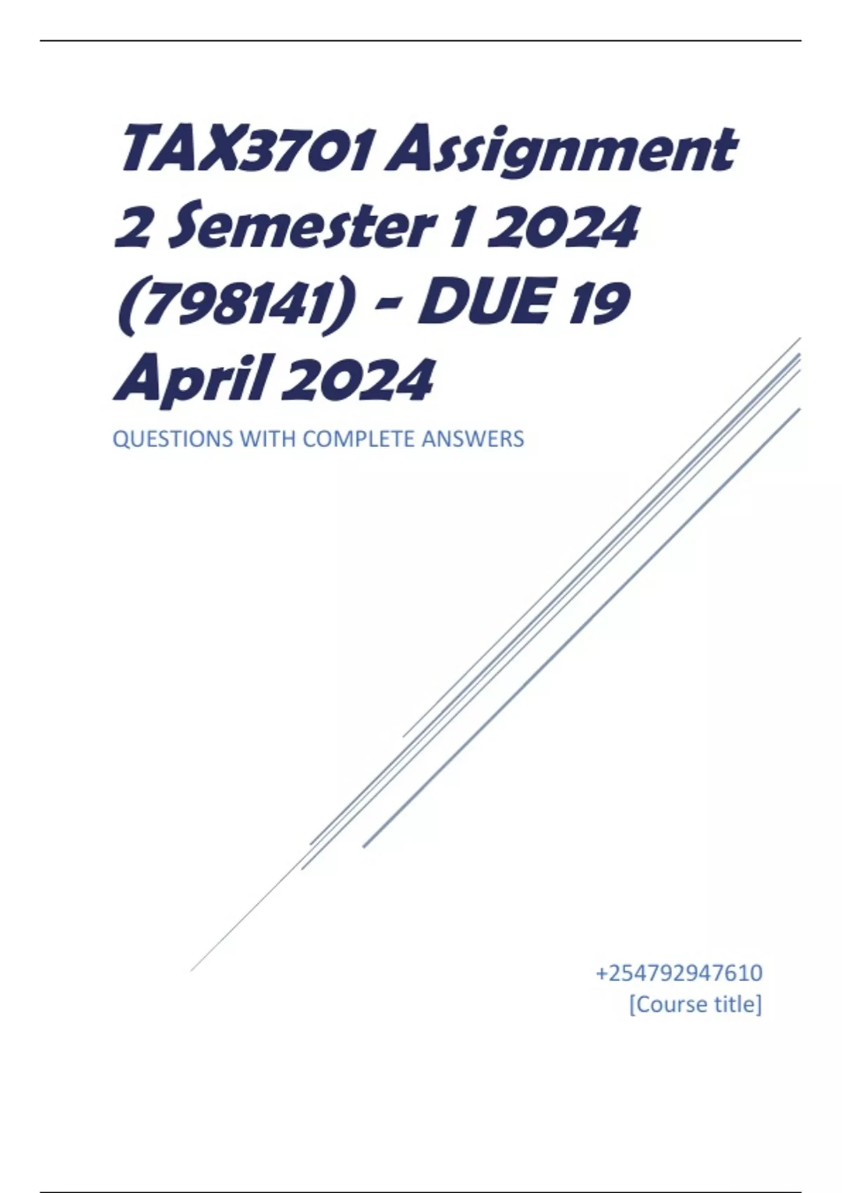 ,TAX3701 Assignment 2 Semester 1 2024 (798141) - DUE 19