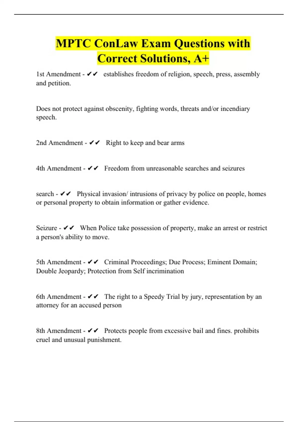 MPTC ConLaw Exam Questions with Correct Solutions, A+