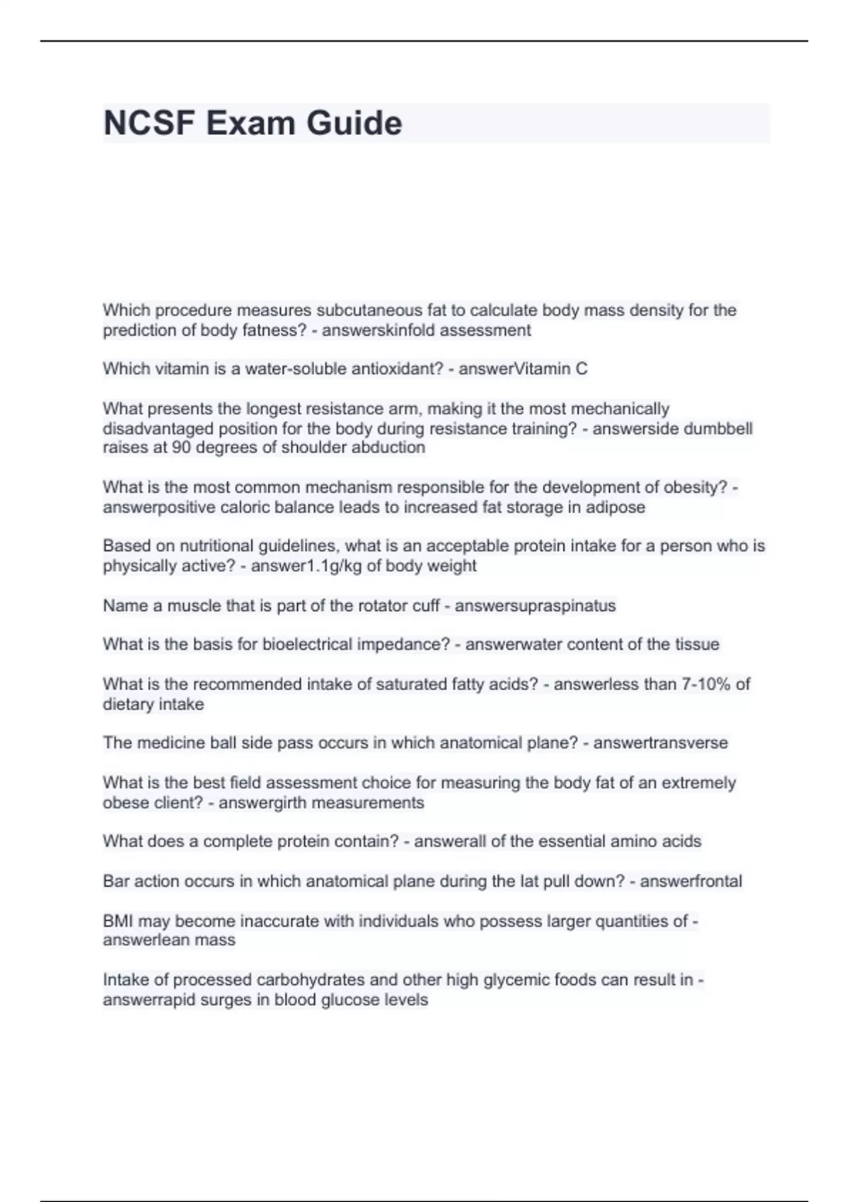 NCSF Exam Guide Questions with correct Answers 2024