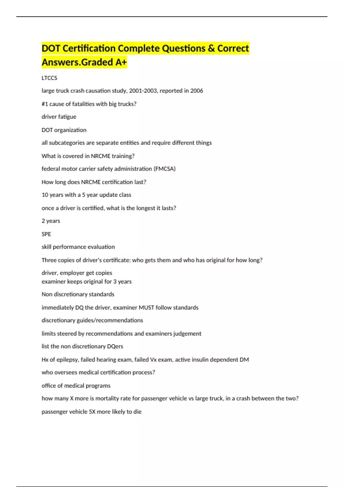 DOT Certification Complete Questions & Correct Answers.Graded A+