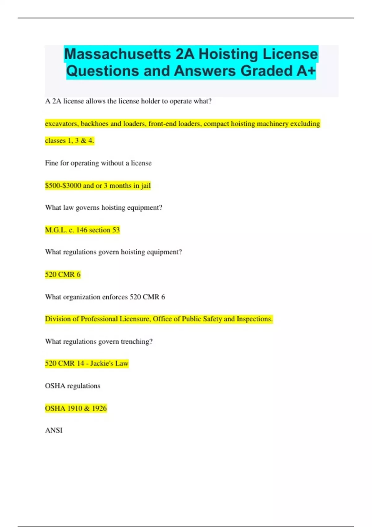 Massachusetts 2A Hoisting License Questions and Answers Graded A+