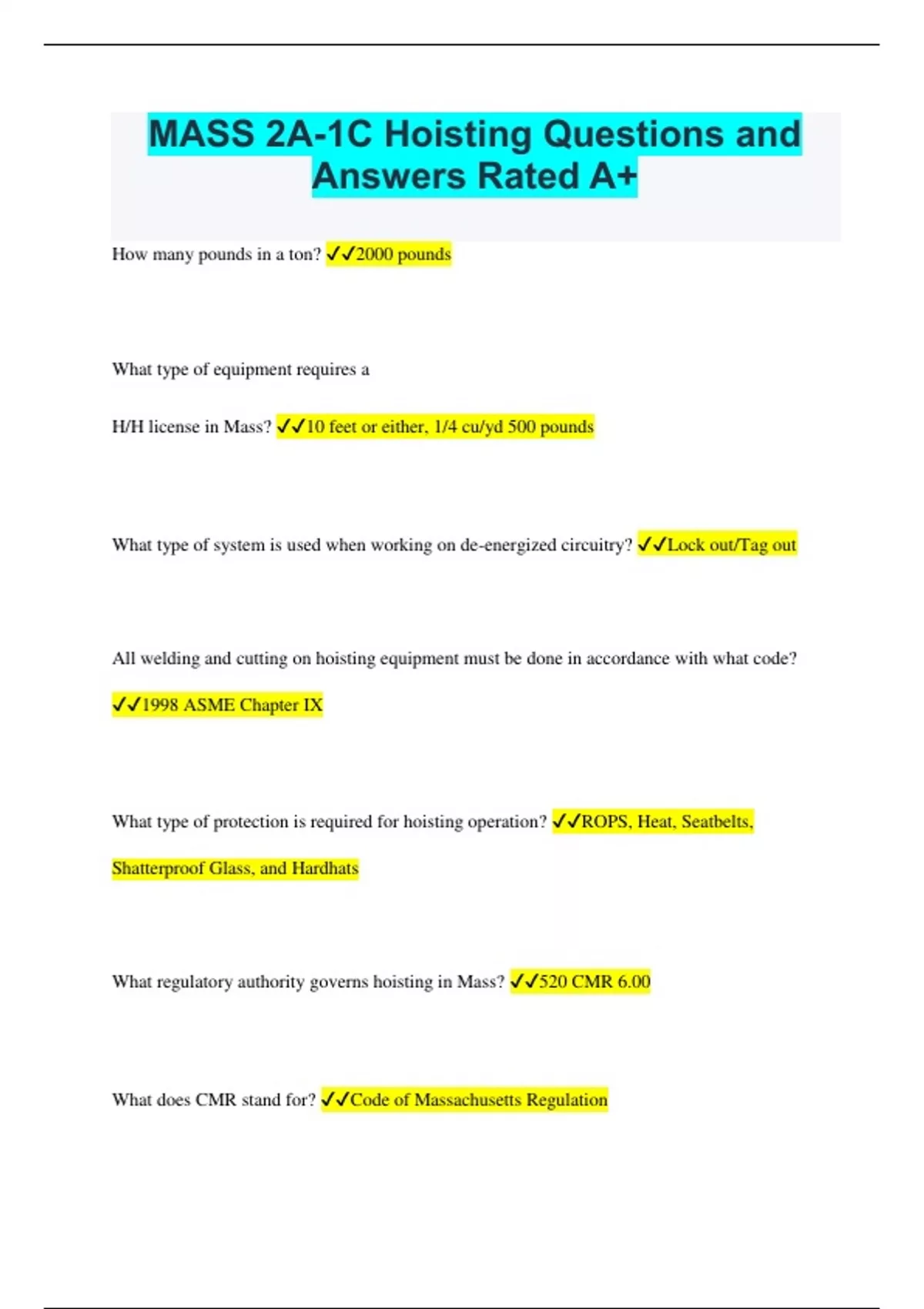 MASS 2A-1C Hoisting Questions and Answers Rated A+