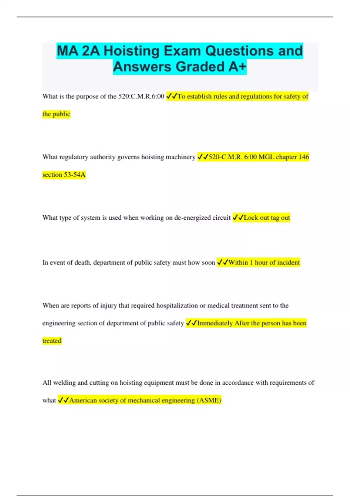MA 2A Hoisting Exam Questions and Answers Graded A+