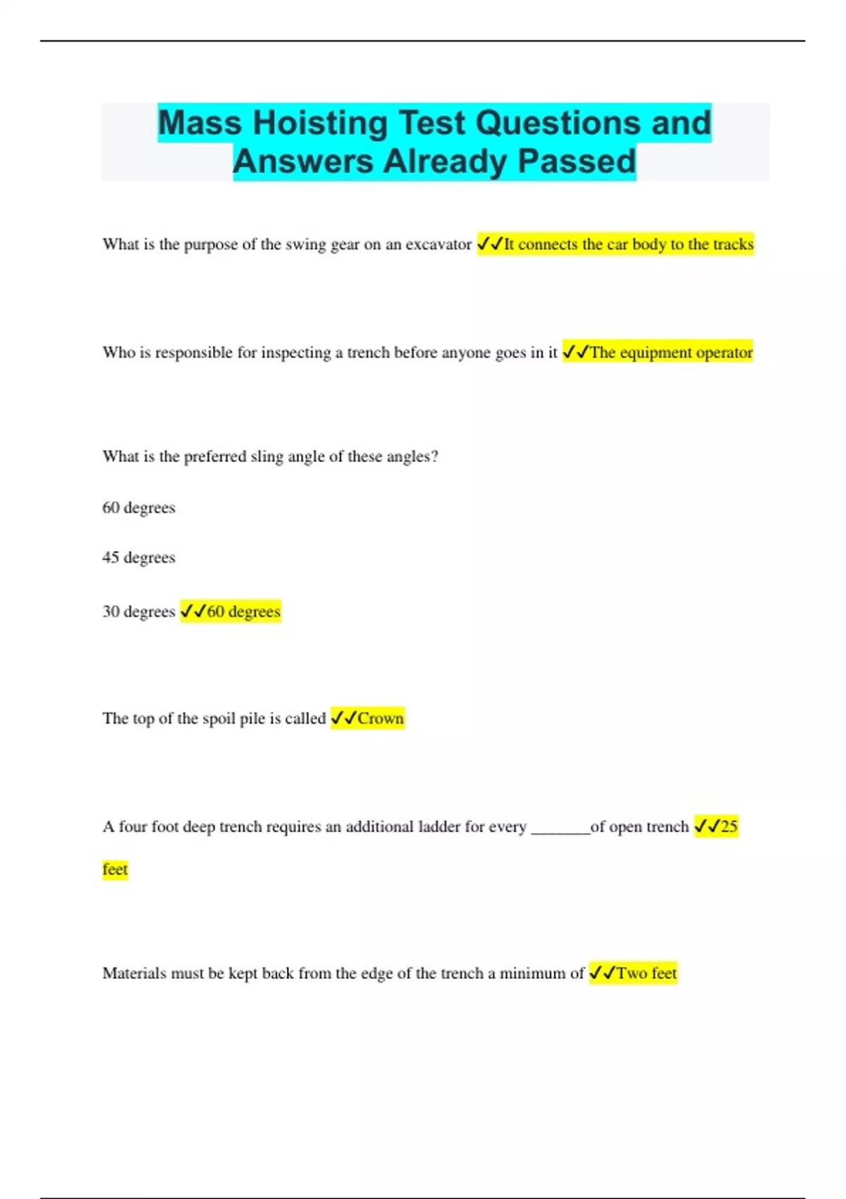 mass hoisting test questions and answers already