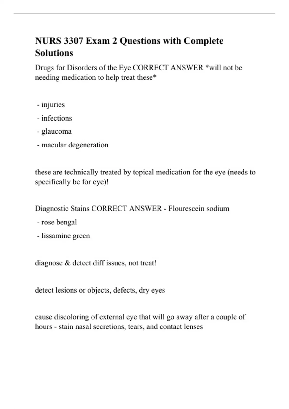 NURS 3307 Exam 2 Questions with Complete Solutions