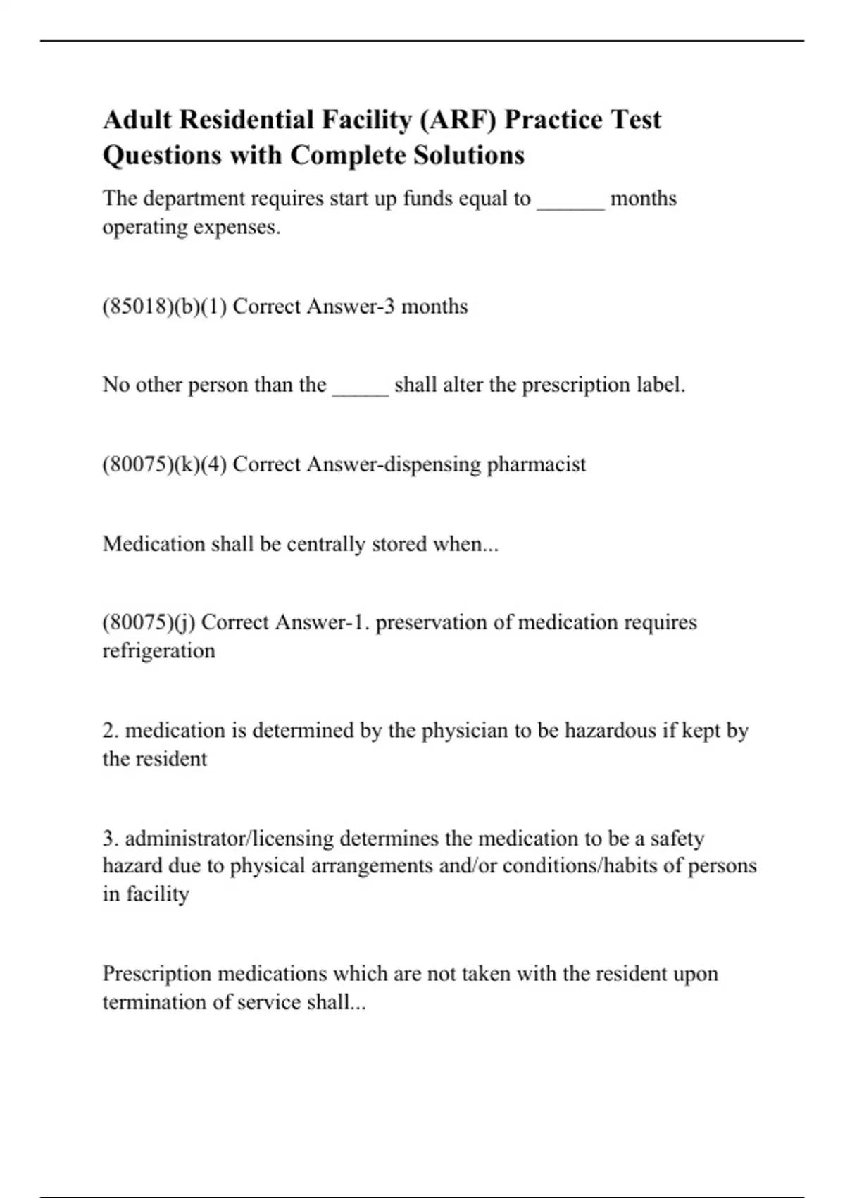 Adult Residential Facility (ARF) Practice Test Questions with Complete Solutions