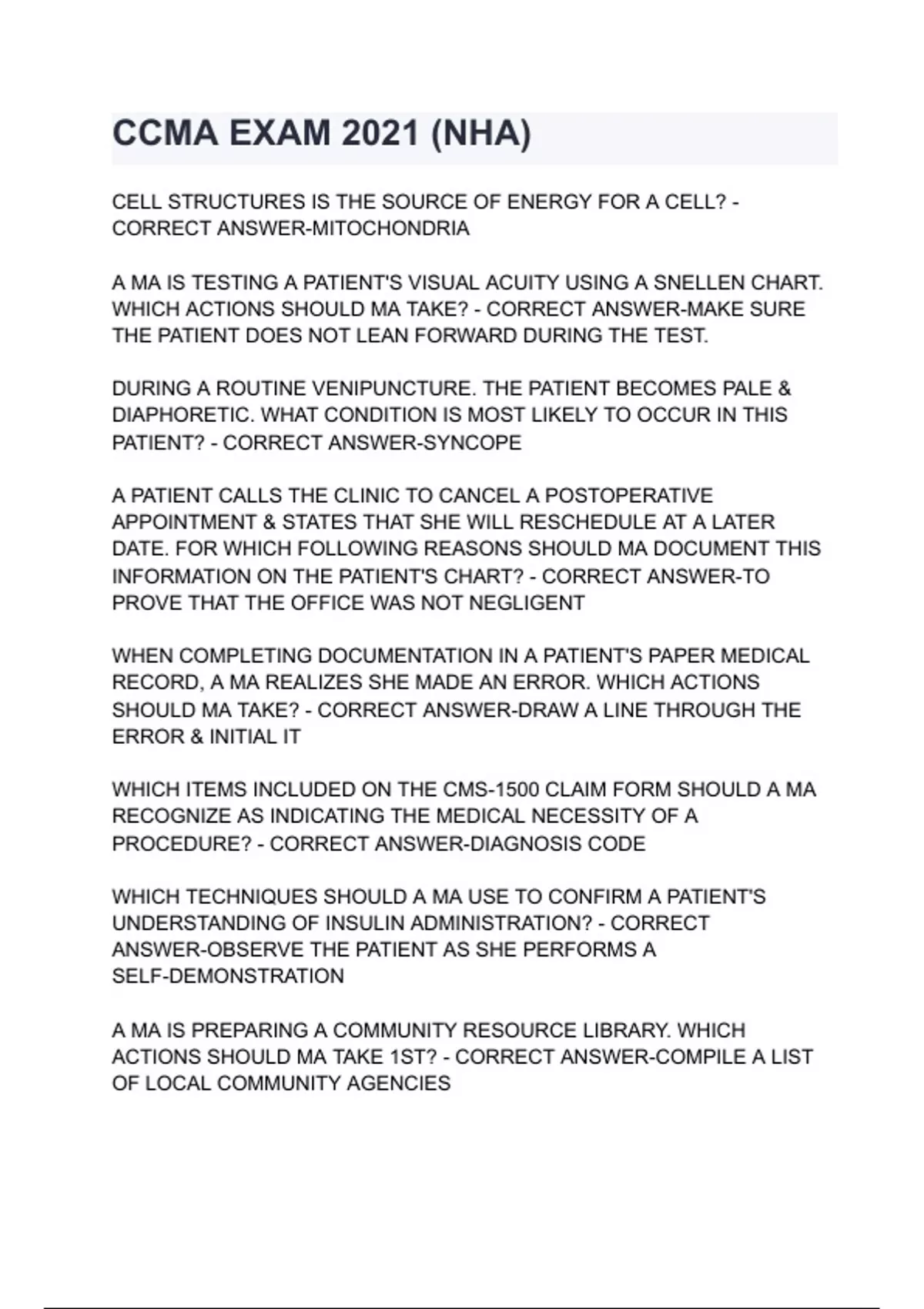 CCMA EXAM 2021 (NHA) ALL QUESTIONS WITH COMPLETE SOLUTION.
