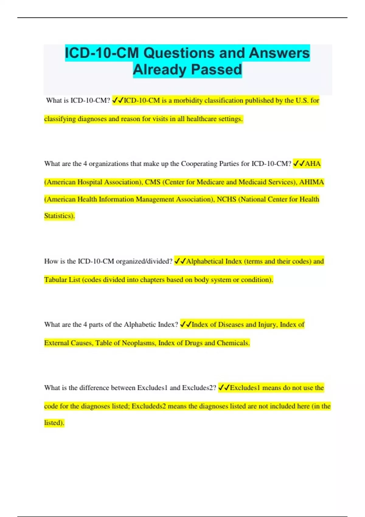 ICD-10-CM Questions and Answers Already Passed