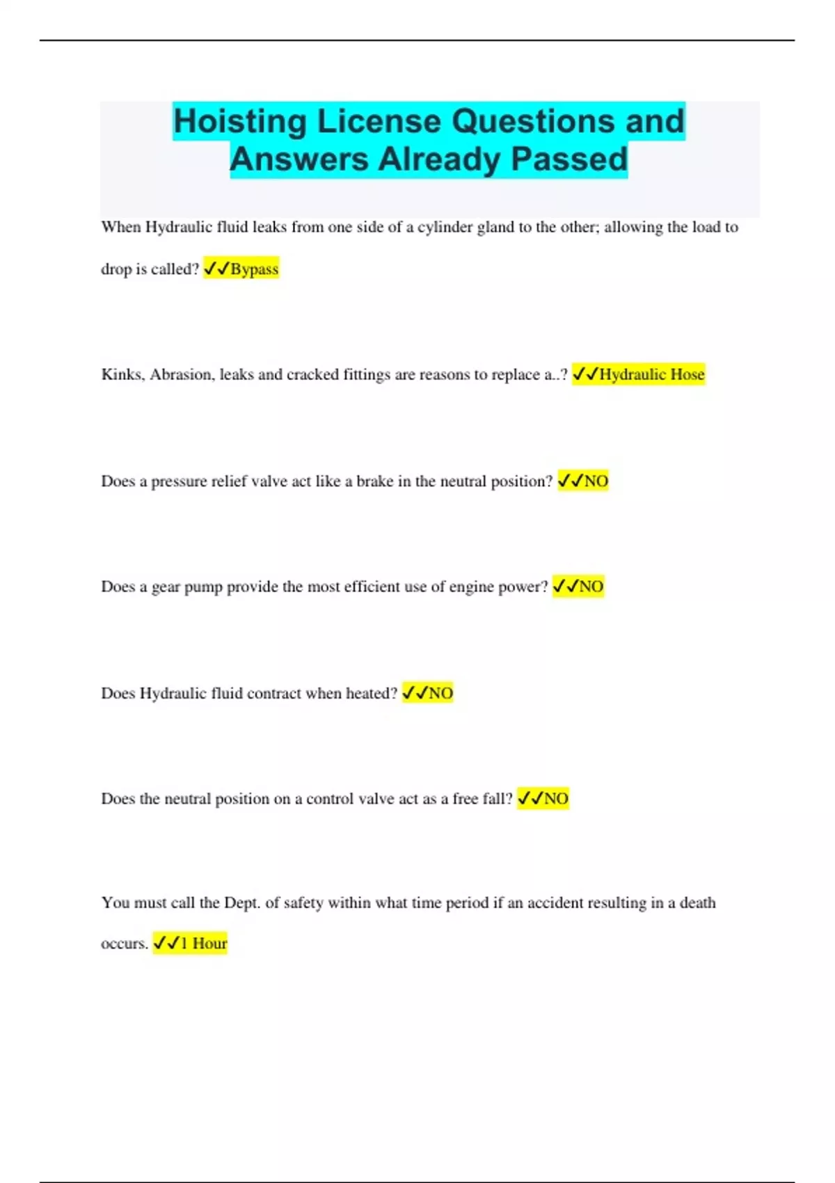 Hoisting License Questions and Answers Already Passed
